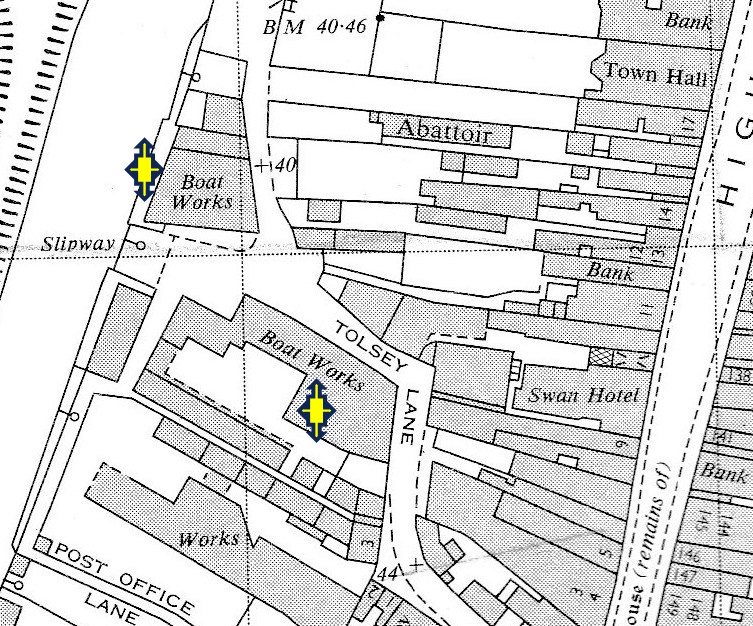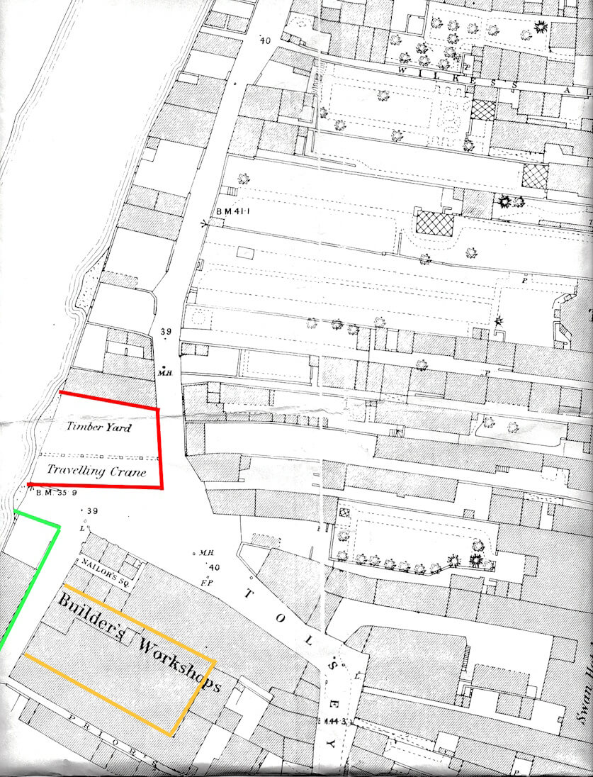 ![Red: Factory 2 [1958]<br>Brown: C&G builders converted [c1958]<br>Green: Riverside House](/images/THS09713.jpg)