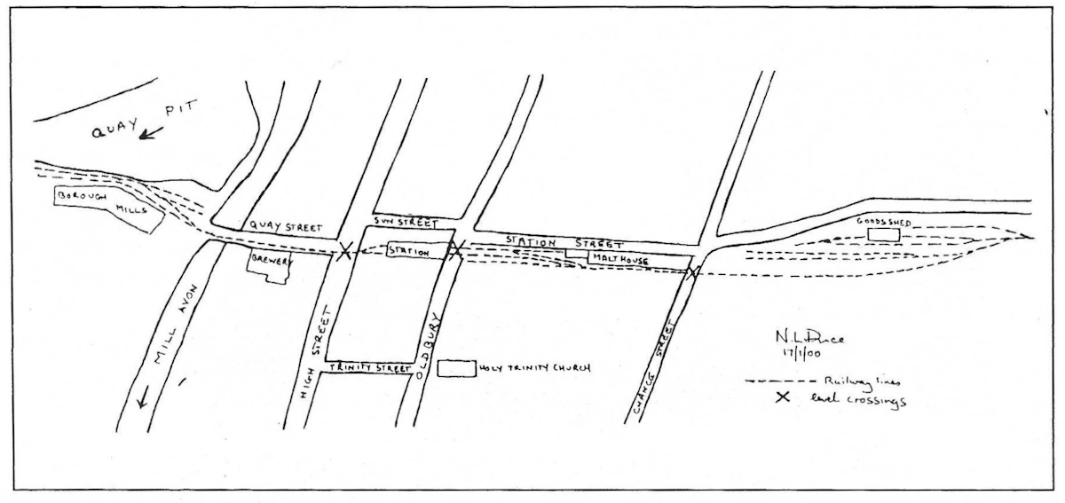 There was uproar, however, when it was found that the railway company had no intention of taking the line to the Quay in the initial stages. This was strange as the line needed as much goods traffic as possible. The railway company offered a lease of the whole line from the Quay to Ashchurch for 20 years at 5% on the building cost: that is to say, they would receive their money back and the branch line after 20 years. No one in Tewkesbury took up the offer. The Council and the railway company eventually shared the expense of extending the line, knocking down one side of Quay Street, opening around 1844 some four years late. Today, looking down Quay Street from the other side of the High Street, behind the premises of ‘Tewkesbury Taxis’ one can see how adjoining buildings were demolished, with strengthening buttresses put in place. It appears only one line went across the High Street but it broadened out to two tracks in Quay Street and then down to one line over its own little bridge over the Avon: it again broadened out in the Borough Mills complex. A maximum of six wagons was allowed to be hauled up the incline by horses. In addition to the Mills, the line served ‘Rice & Co.,’ ‘Tewkesbury Brewery’ and any traffic generated by the river.