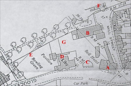 - D always belonged to Tredington Parish and, although it was walled into the garden, rent was paid on it until 1906 when the County Council wished to own it legally and so purchased it. It was upon this garden that the new Grammar School [D] was built.