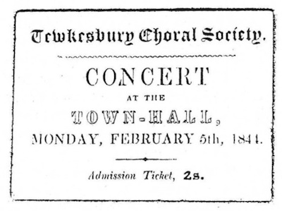 Visit the website of the Tewkesbury Choral Society The exact date of the foundation of the Tewkesbury & District Choral Society is unclear. A ticket for a concert in ...