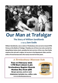 The funeral of David Page will take place on 26 February 2026 at 10.30 at the Crematorium in Cheltenham. David was the only son of Almeric Page and he, with his father, have contributed articles to the THS Bulletin. His last article was in Bulletin 34 last year when he wrote about the Sea Cadets.February 2026 Meeting