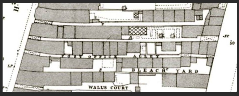 With no buildings left, Hayward’s took the opportunity to extend the yard behind their shop to give space for business expansion. A concrete block wall took the place of what were cottage fronts. In the 1990s, cottages re-appeared; built on the site of the old Bleach Yard cottages, but opening on to Old Post Office Alley. Thus the old pattern of development was changed and the houses are not behind the front house. They are, though, an example of how alleys can have a new life with practical modern houses in keeping with their setting.