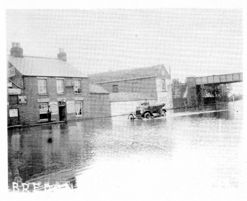 Photograph 5 shows two motorcyclists apparently (against the odds) trying to ride out of town through the floods. The crowd had gathered to see if their attempt proved successful. Motorcycling had an almost pioneering glamour in the 1920s, so the riders’ bravado was very much in keeping with the age. Although the identity of one of the motorcyclists remains unknown still, the one on the right was recently confirmed to be Harry Bayliss, a labourer from Forthampton, and the names of many of the individuals behind or around them have now been traced. Going from left to right, there is Mrs. Hopton and her daughter, Frances. A couple of faces along we think are Mr. Heath, Mr. Spiers, Mr. Lewis and Mr. Greening, in front of whom is Mr. T. Woodward. After a couple more places there are B. Underwood and next to him, F. Walker. Finally, close to the right-hand side of the photo are Fred Green, Bill Cull and, in the foreground, A. Hodges.